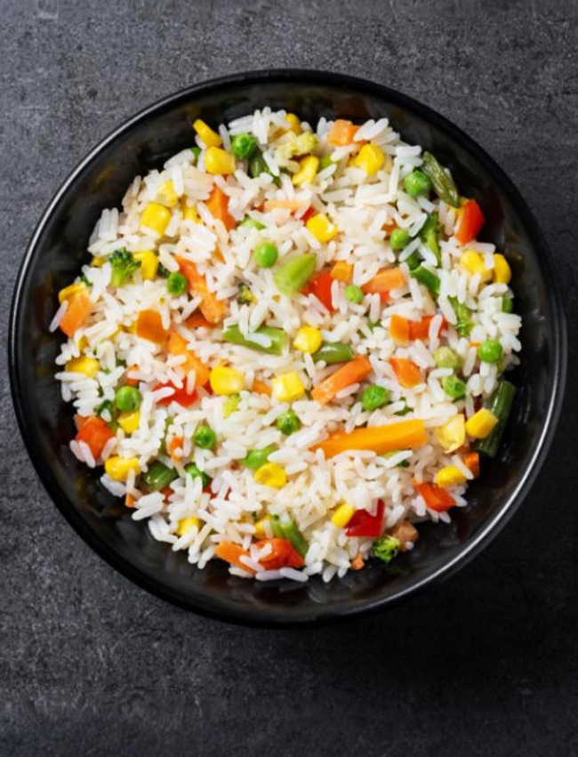 2) Cover and cook for about 5 minutes, or until the vegetables are tender yet slightly crunchy. Add the cooked and cooled rice. Sprinkle sugar, cumin powder, fennel powder, and crushed black pepper. Toss everything gently but thoroughly so the rice doesn’t break.